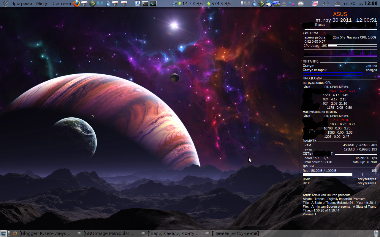 Тепер перейдемо до такого незмінного атрибуту мого робочого столу як Conky.
